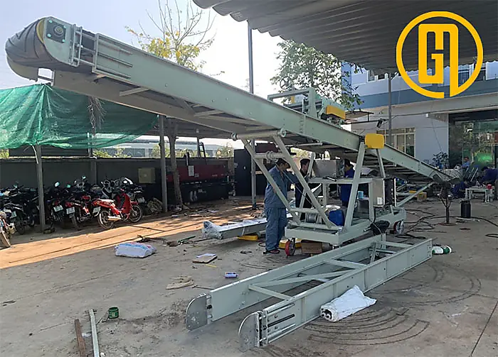 Loại băng tải này dễ di chuyển và lắp đặt, hỗ trợ xếp dỡ hàng hóa nhanh chóng, phù hợp cho các doanh nghiệp logistics hoặc vận tải. -