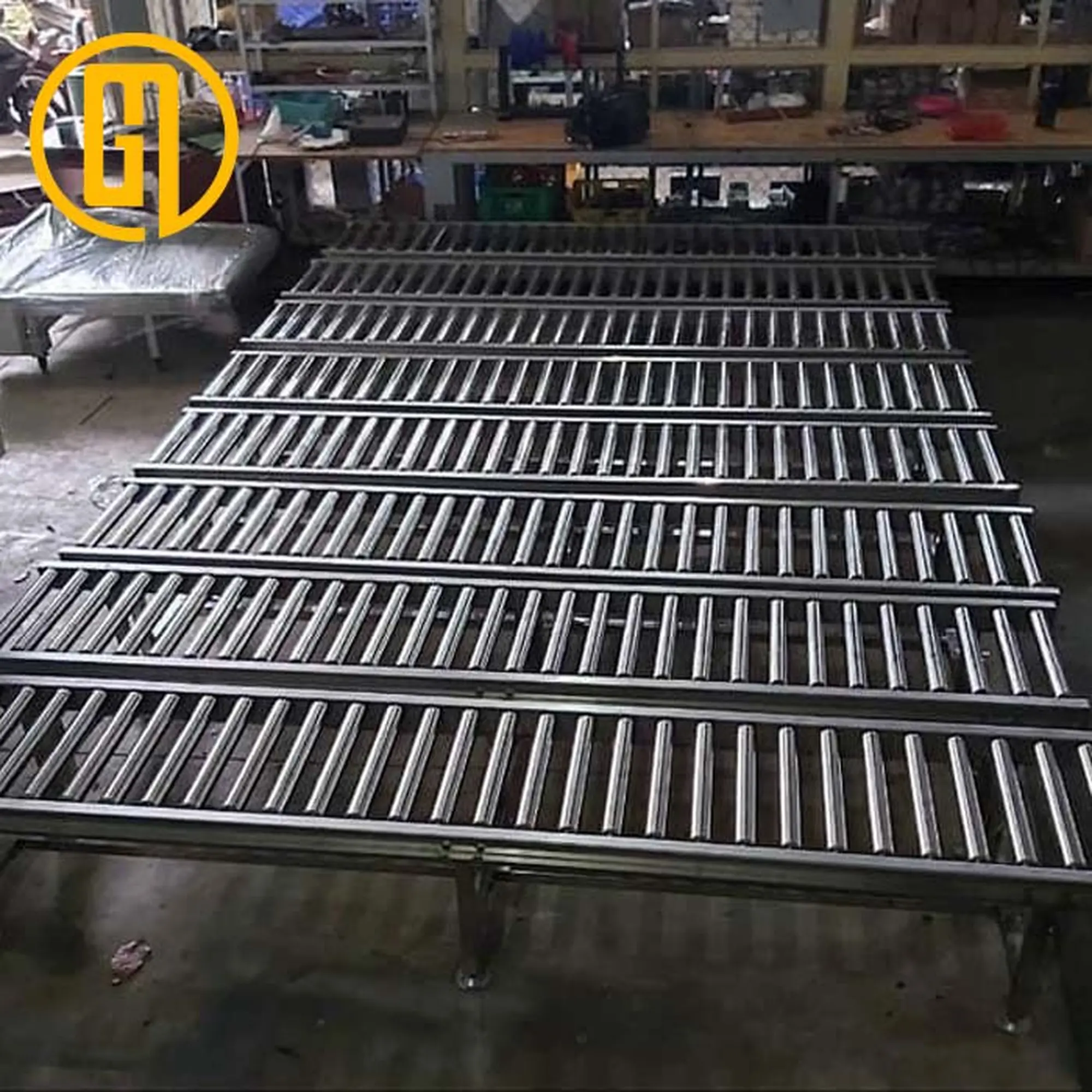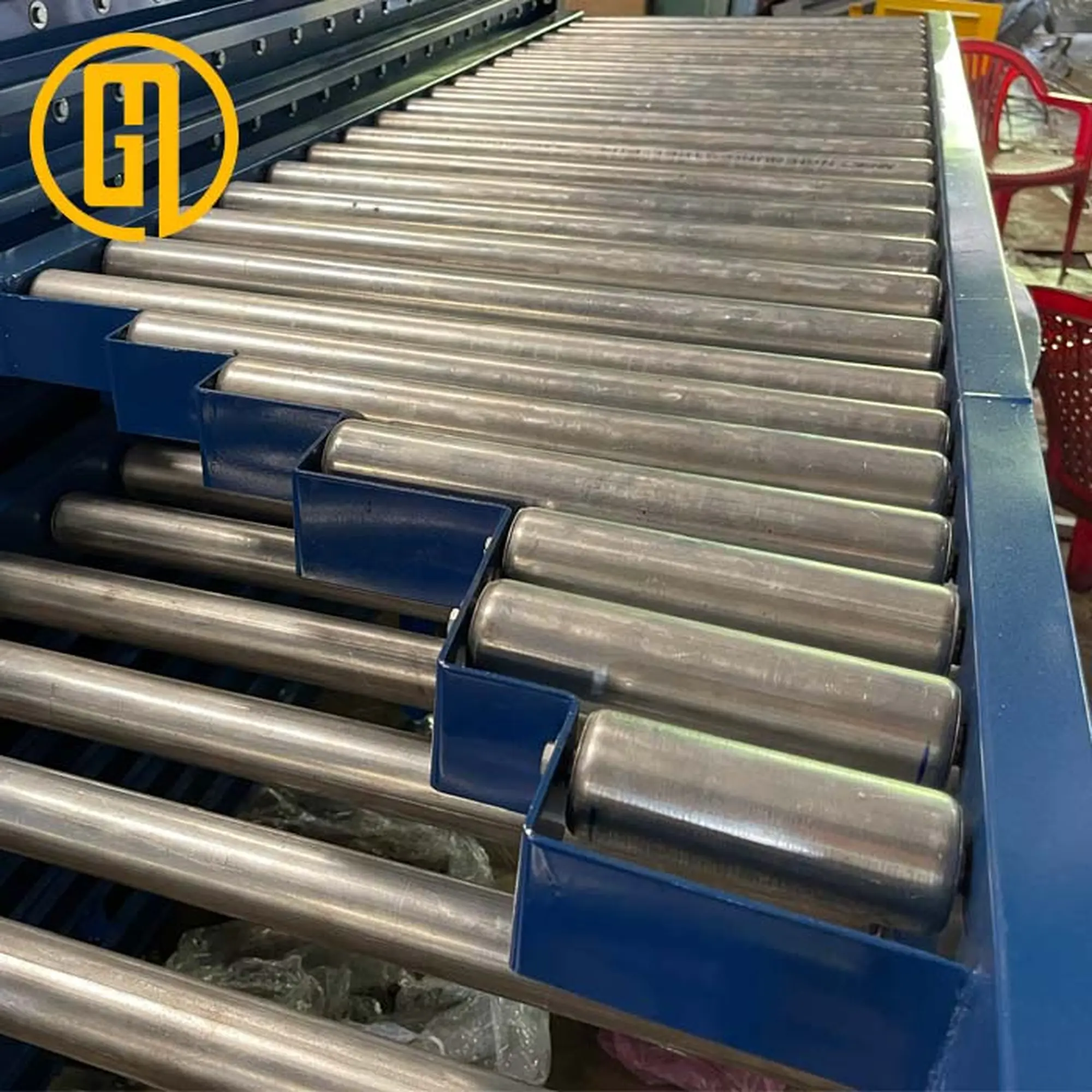 - Băng tải con lăn thẳng: Có cấu trúc đơn giản, thích hợp cho việc vận chuyển hàng hóa trên quãng đường thẳng.