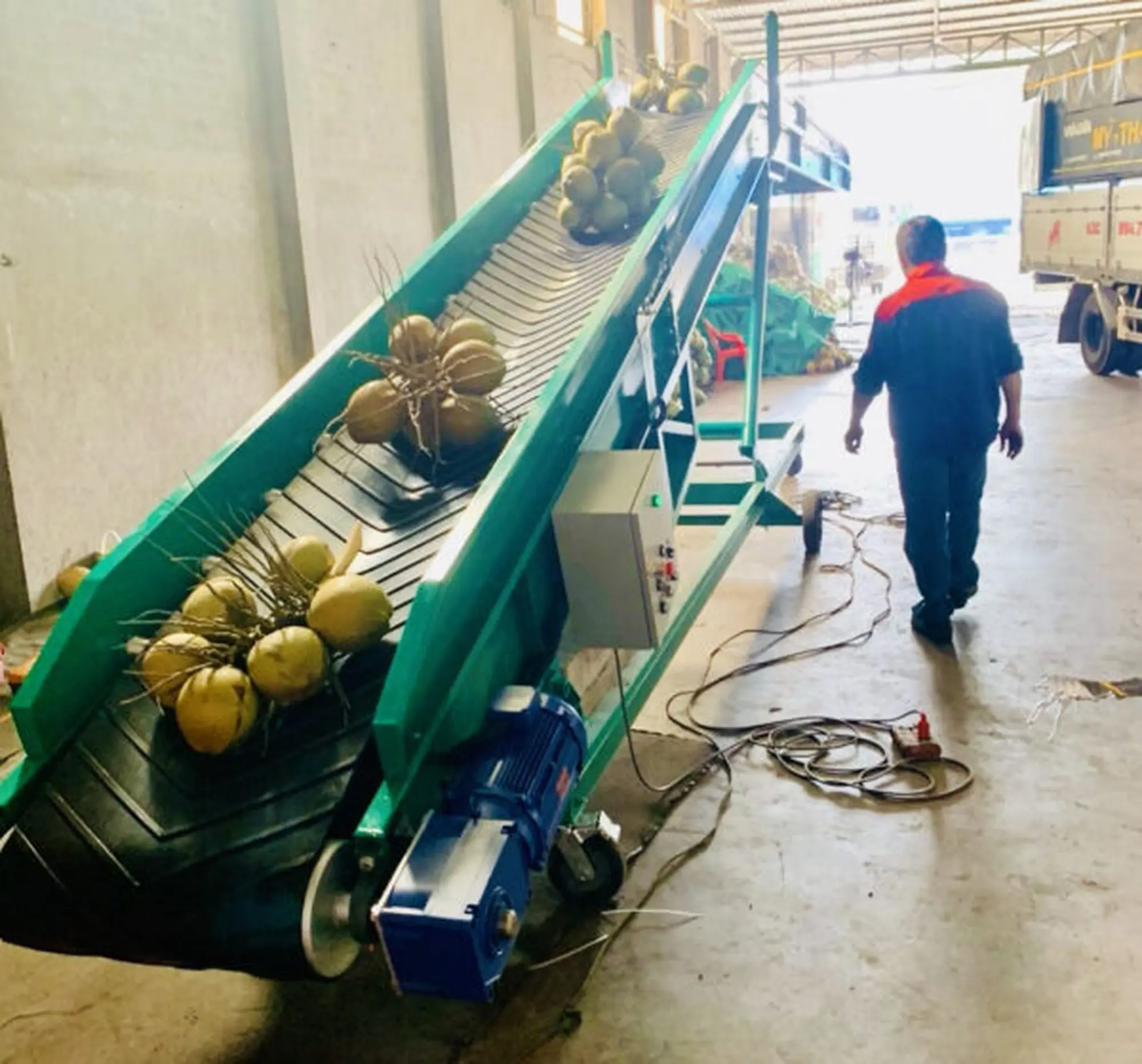 Băng tải cao su chuyển dừa lên xe là gì?