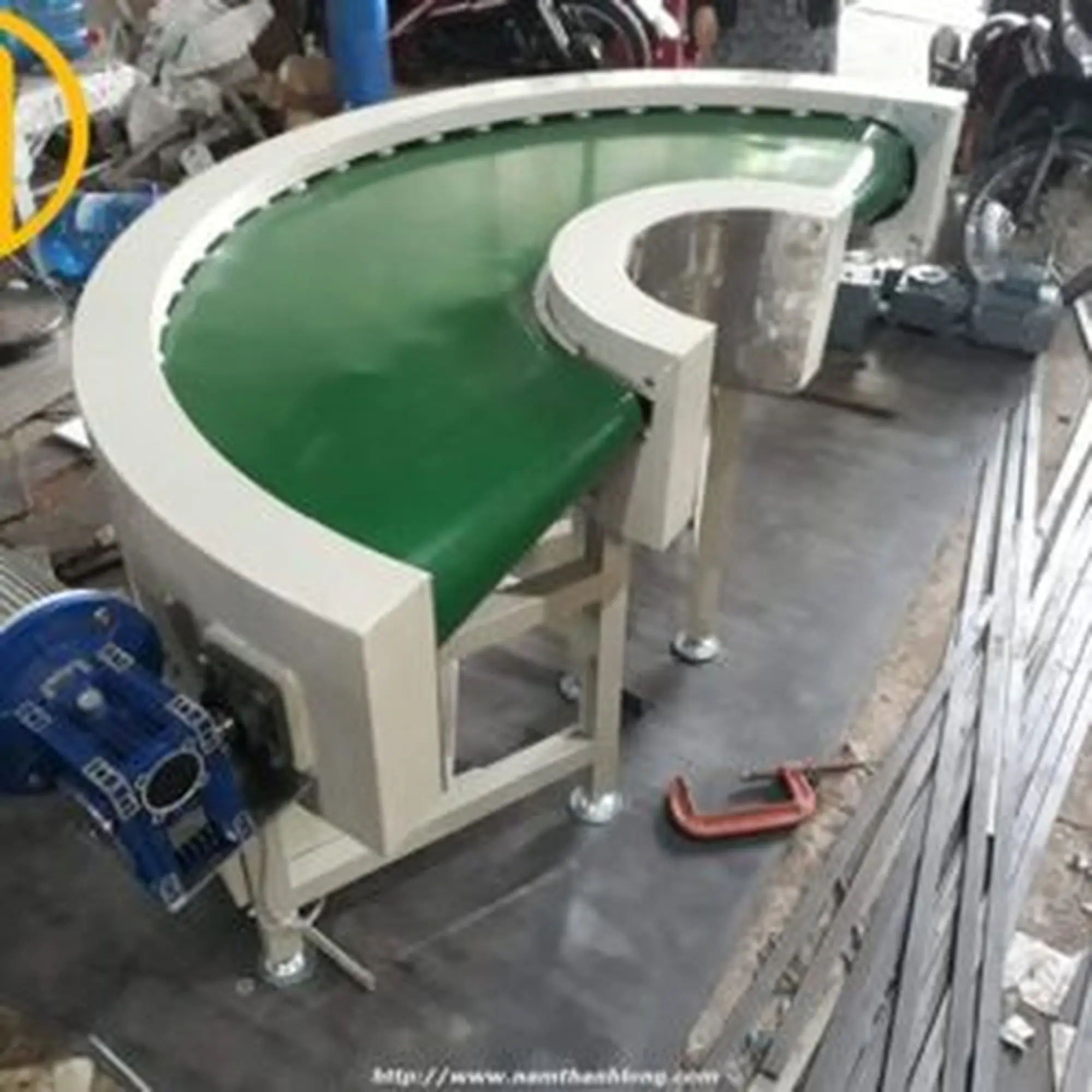 – Băng tải góc cong được đặt ở vị trí chuyển hướng di chuyển của băng tải để tiết kiệm không gian.