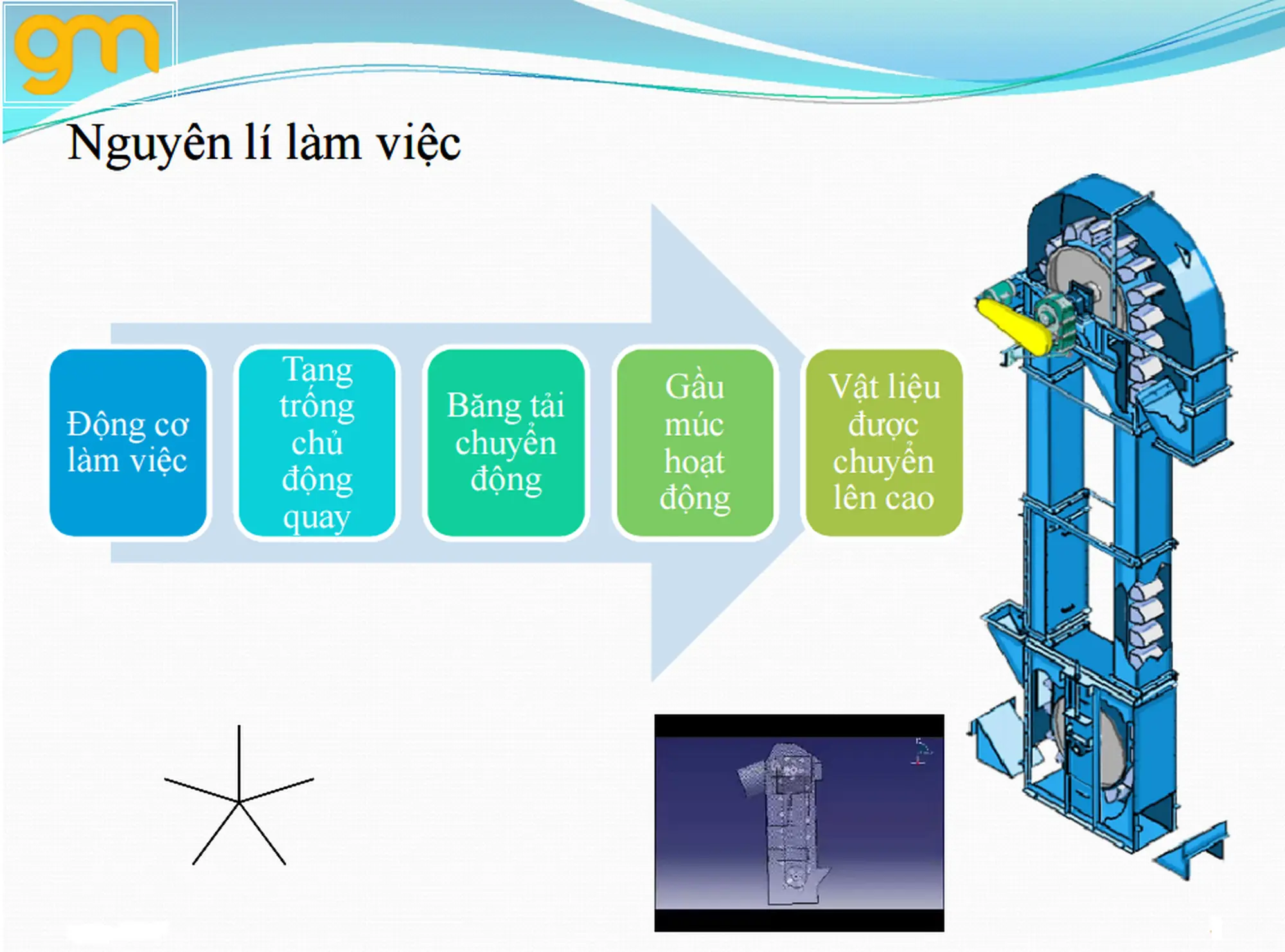 Nguyên lí hoạt động gầu tải công nghiệp: