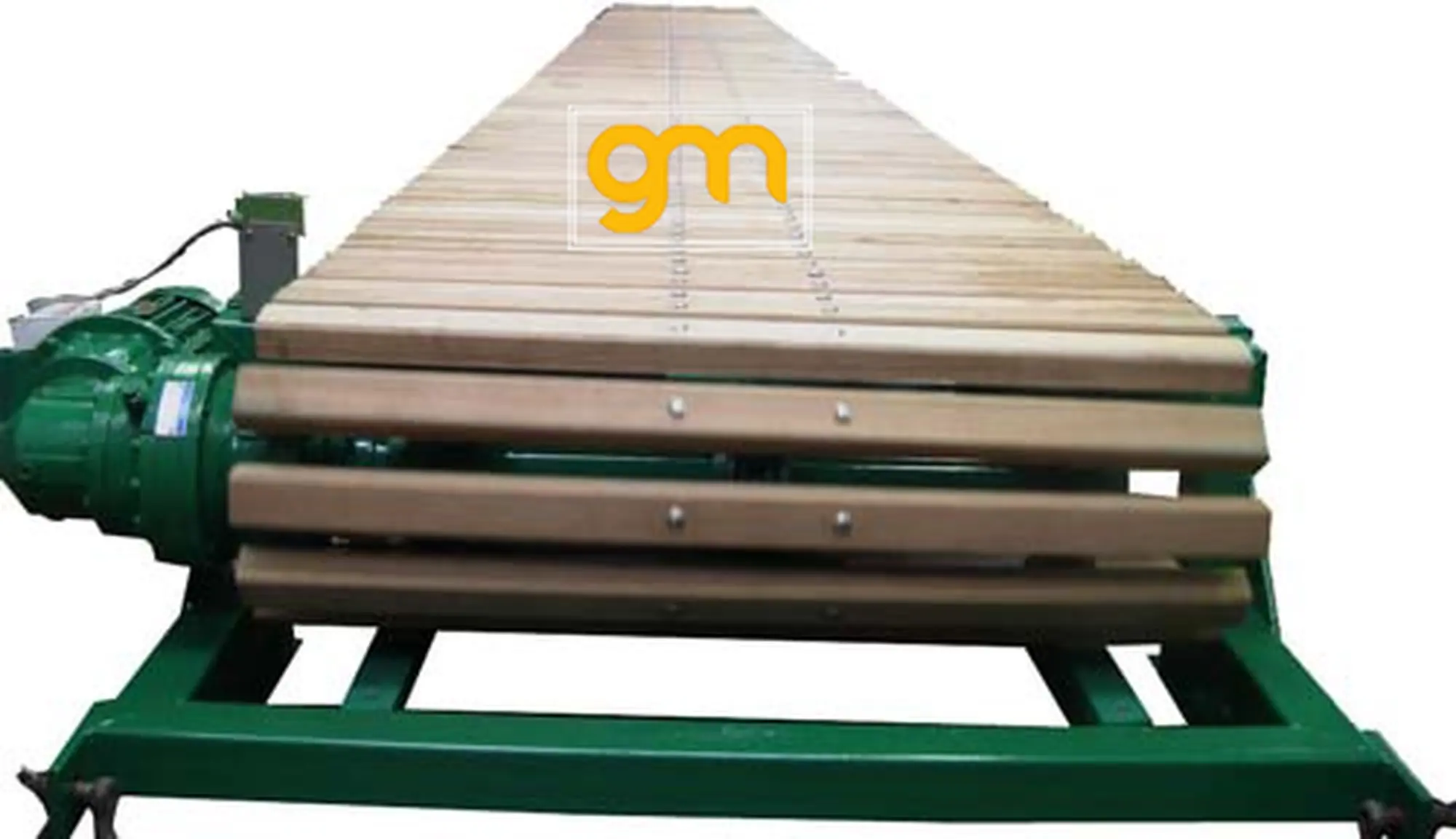 Dây băng tải được làm bằng các thanh gỗ tự nhiên, chắc chắn, được ngâm trong hóa chất chống cháy, có khả chịu mài mòn và chịu được nhiệt độ cao.