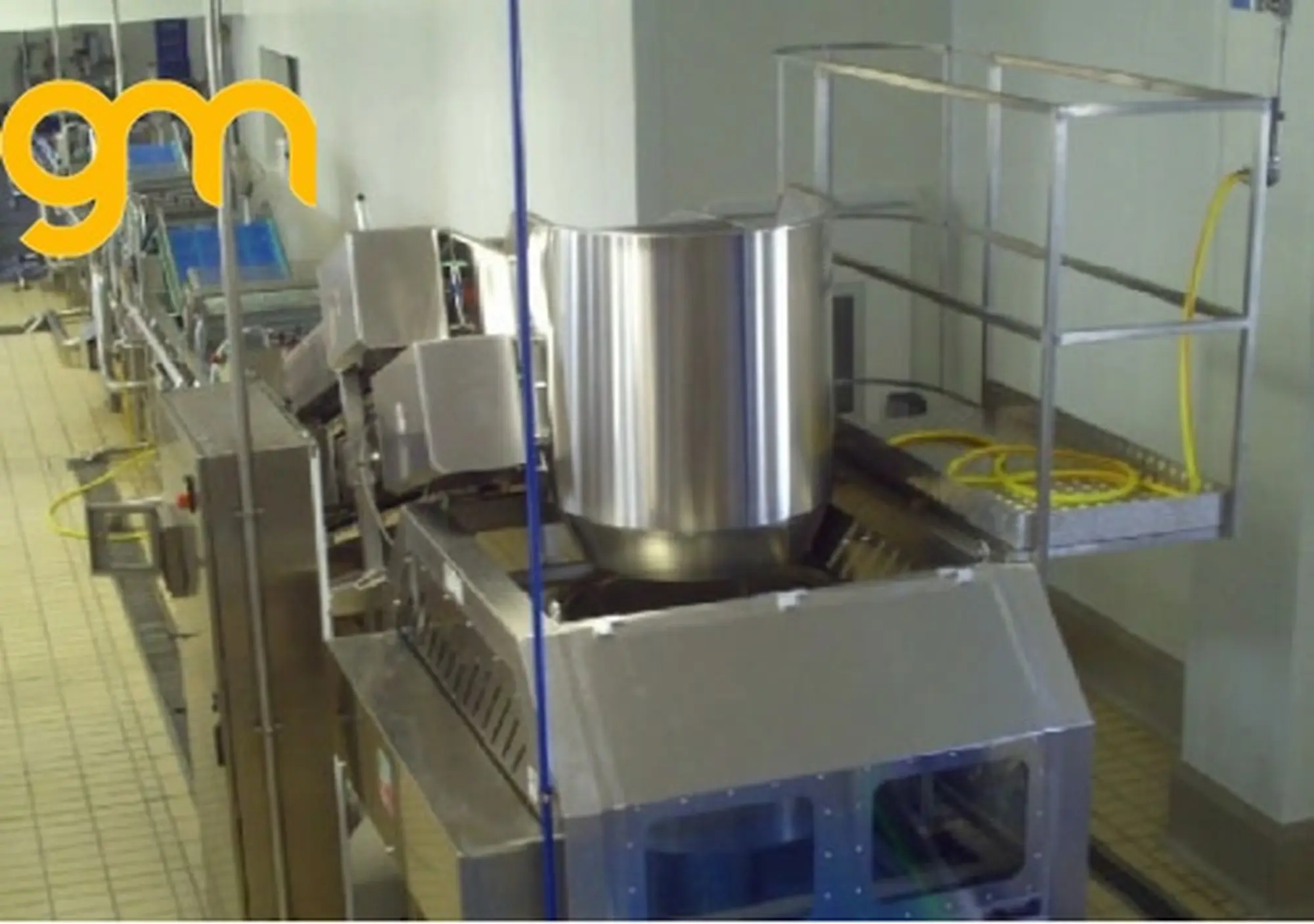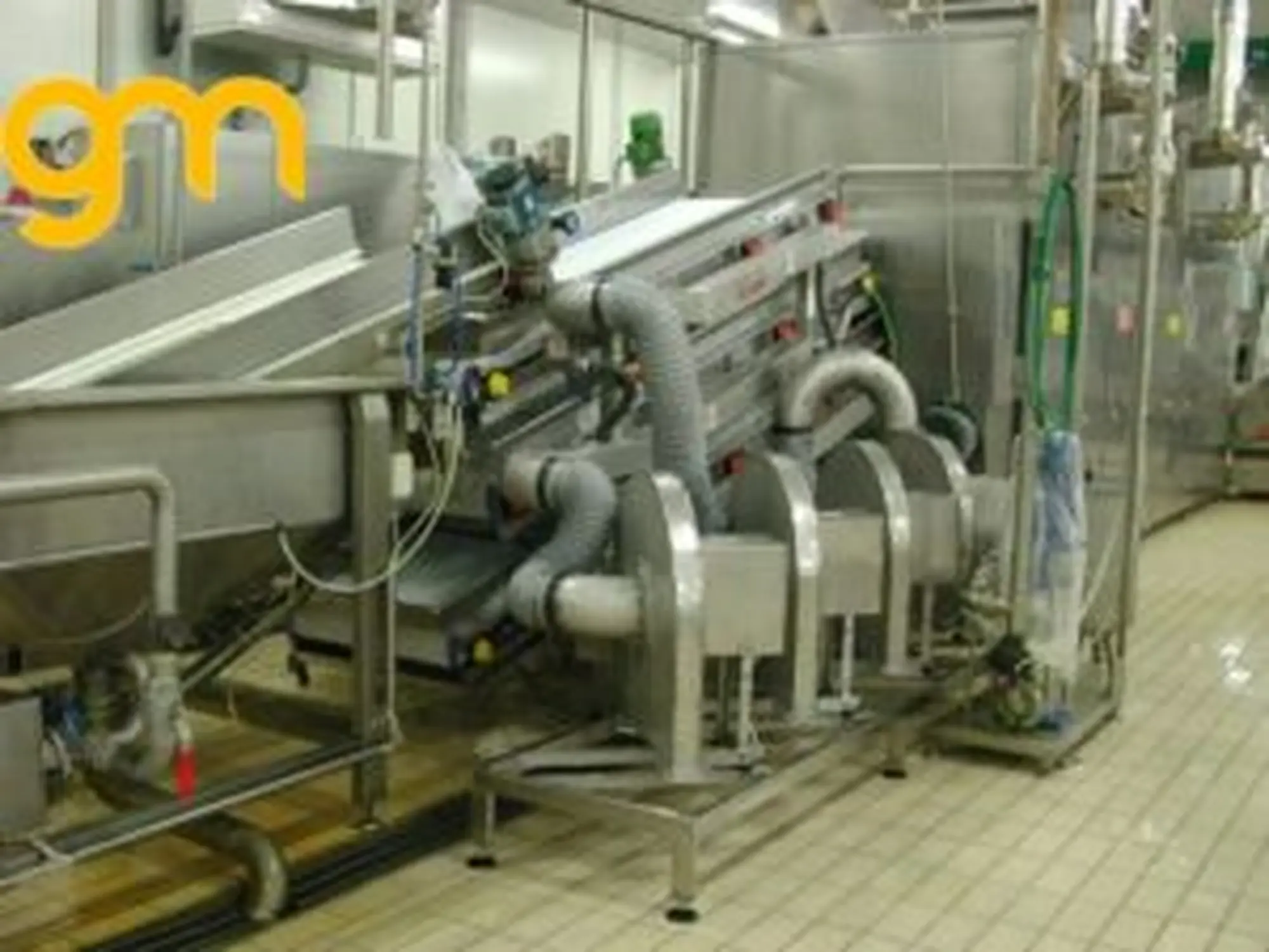 Sau khi rửa lần 1 nó được đưa lên bằng chuyển đến nơi rửa lần 2 và được đưa vào các dụng cụ đựng.