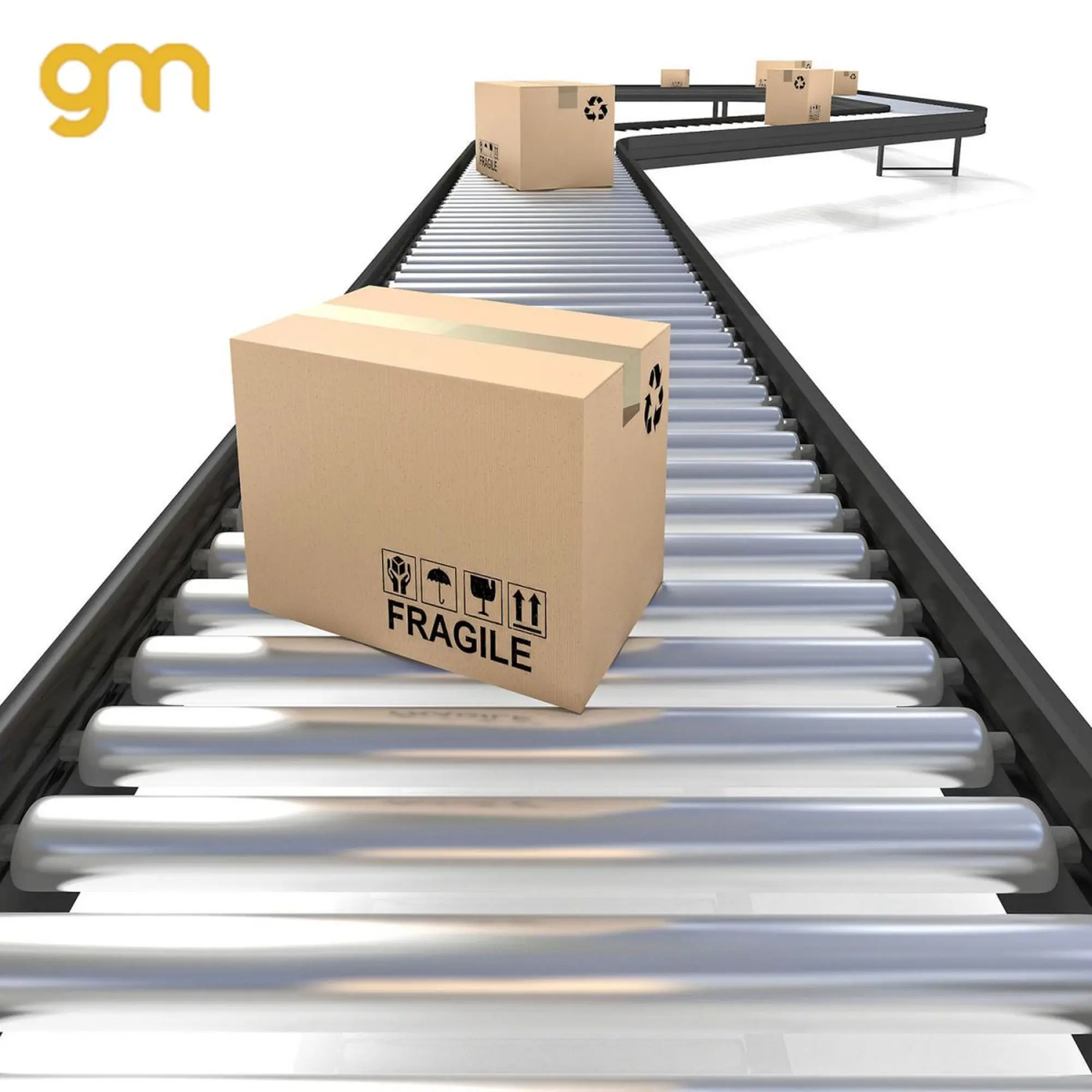 - Băng tải góc cong được đặt ở vị trí chuyển hướng di chuyển của băng tải để tiết kiệm không gian.